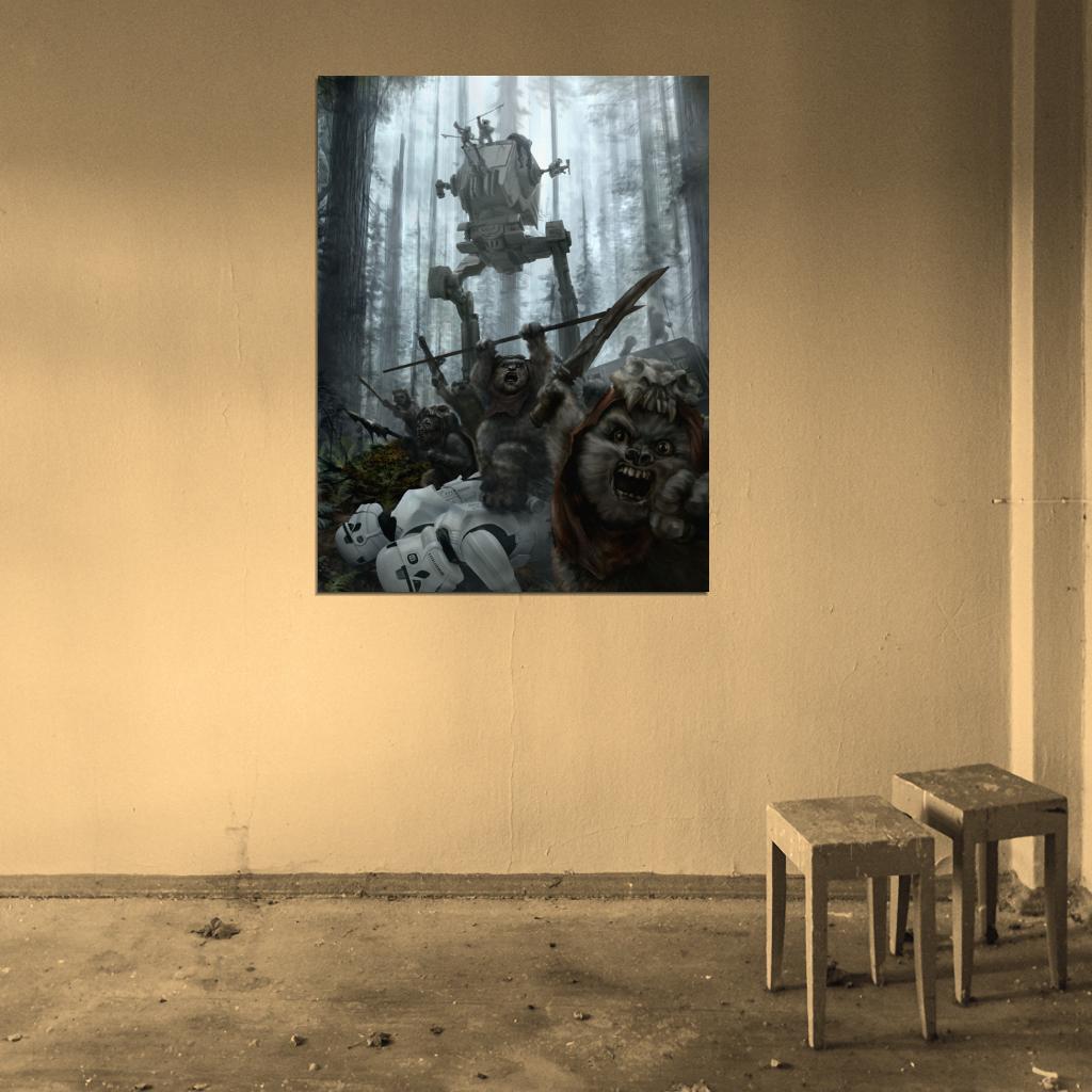 Battle of Endor AT-ST Walker Stormtroopers Ewoks Star Wars Movie Awesome Painting Art Wall Art Print Poster