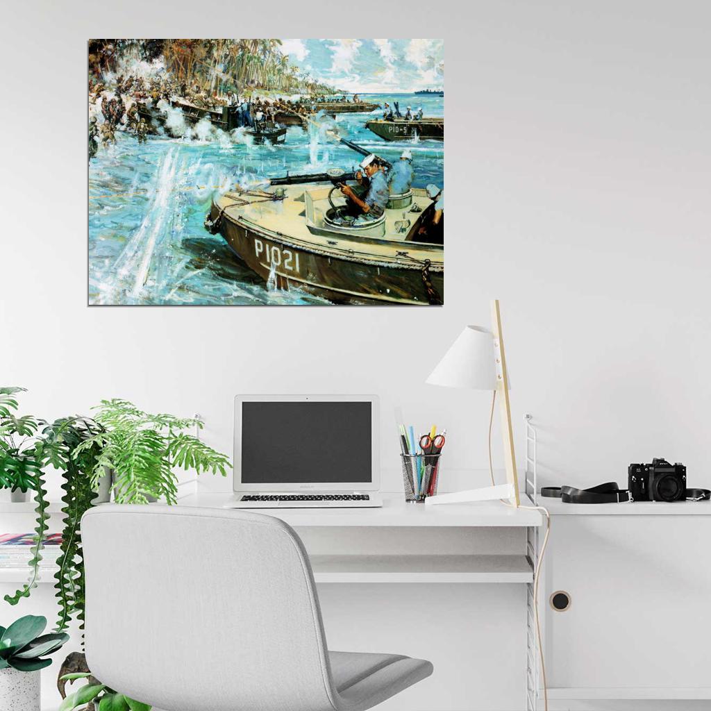 Battle of Okinawa 1945 Soldiers World War 2 WW2 Painting Art Wall Art Print Poster