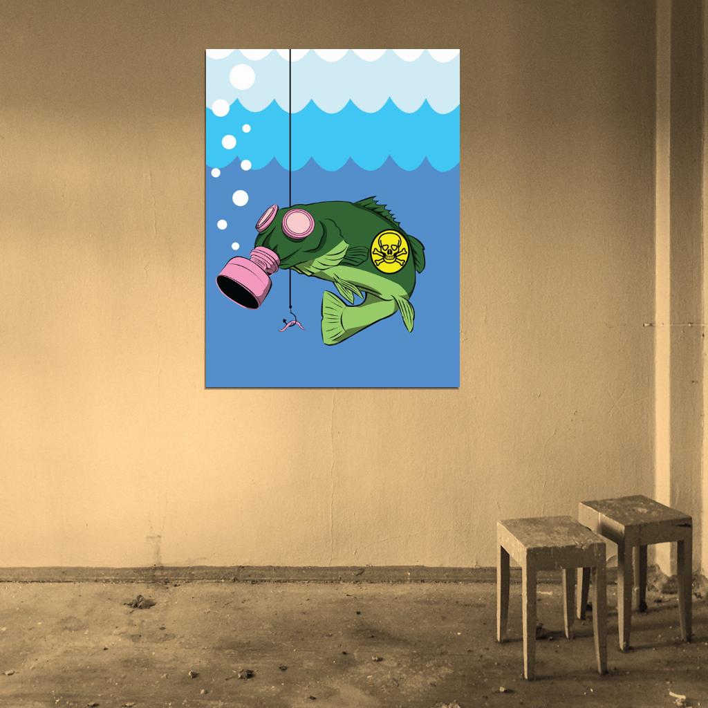Biohazard Fish Toxic Fishing Gas Mask Cool Art Wall Art Print Poster