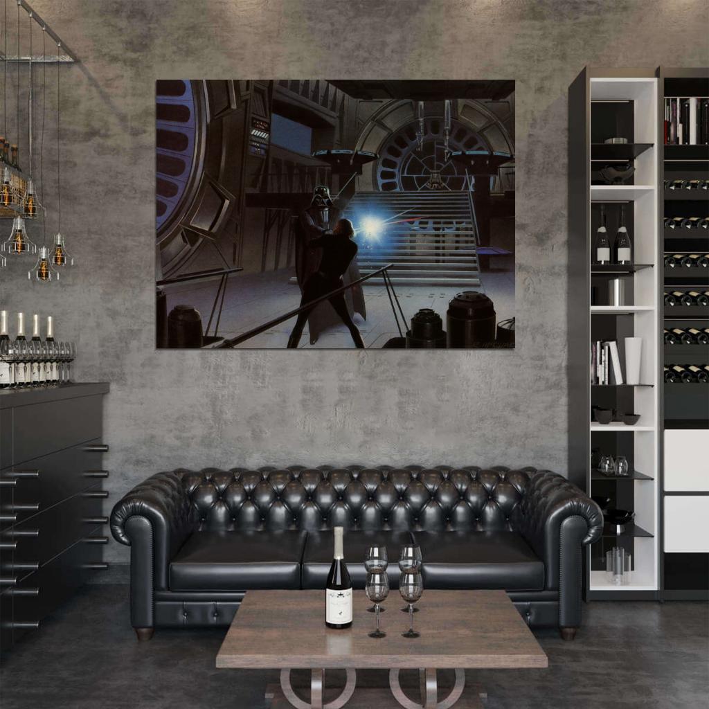 Darth Vader vs Luke Skywalker Fight Retro Vintage Concept Artwork Star Wars Movie Awesome Painting Art Wall Art Print Poster