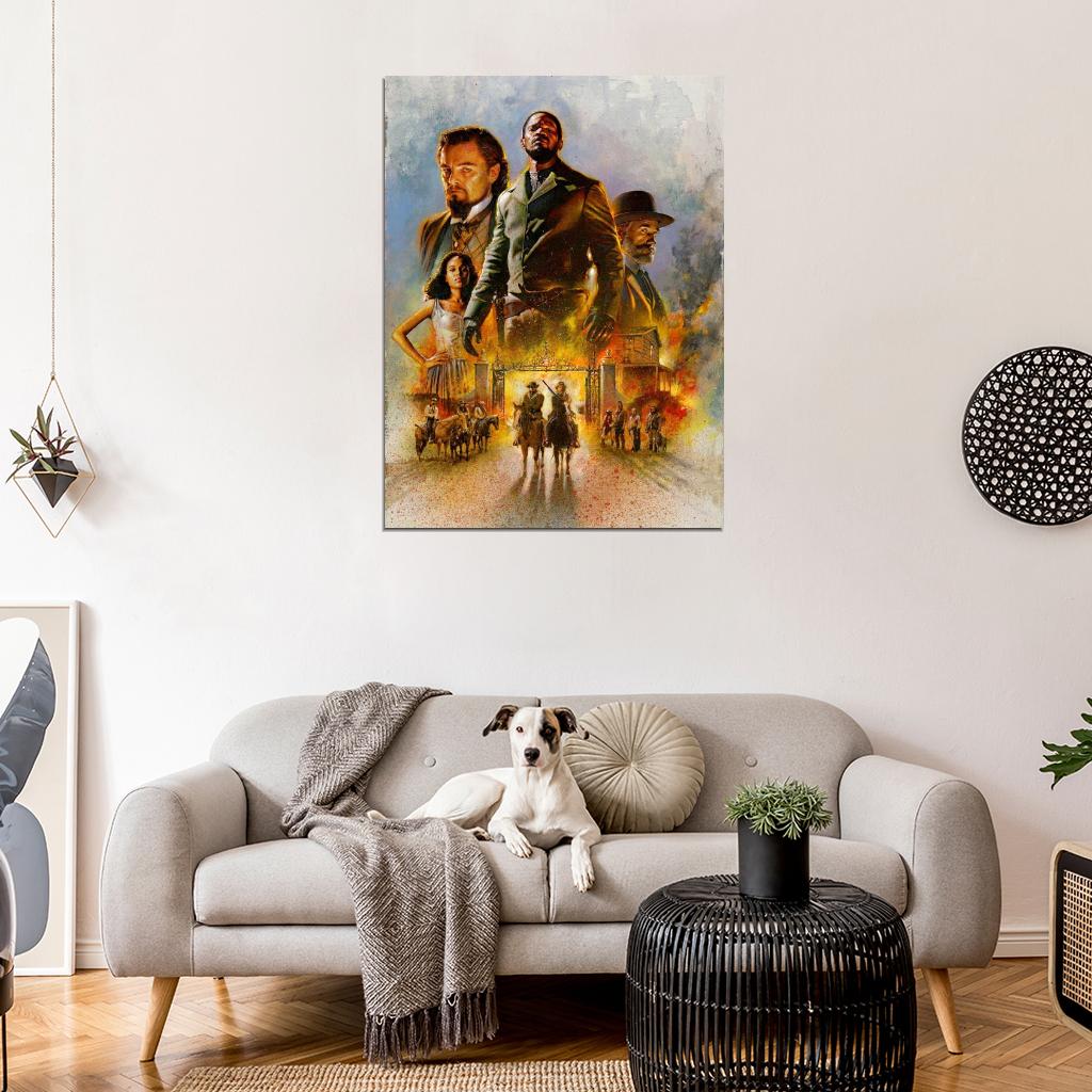 Perfect for Movie Lovers: Django Unchained Movie Art Characters Quentin Tarantino Artwork Wall Art Print Poster makes a thoughtful gift for any occasion. Featuring classic movies, TV series, cartoons, or animated favorites, this wall print complements any decor with its vintage, horror, adventure, sci-fi, comedy, or retro style.