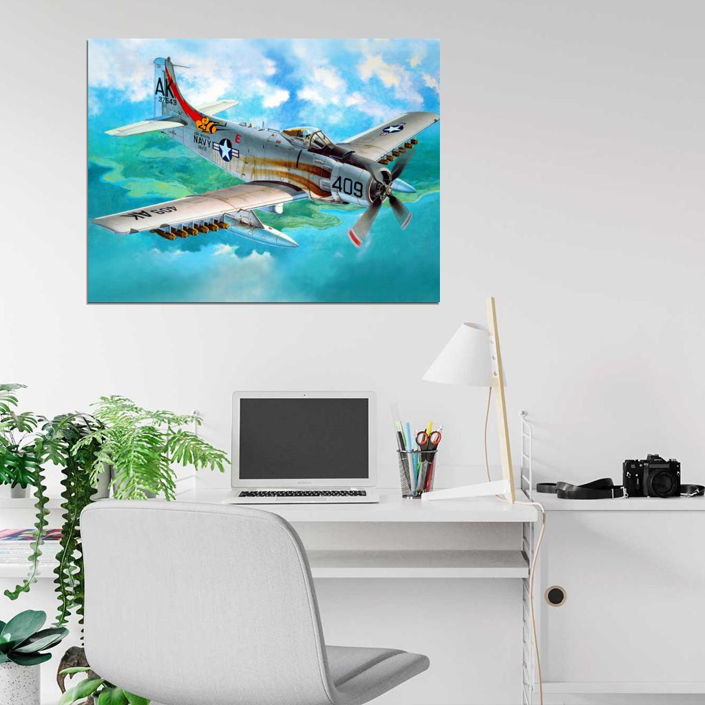 Douglas A-1H Skyraider Air Forces WW2 War Military Wall Art Print Poster