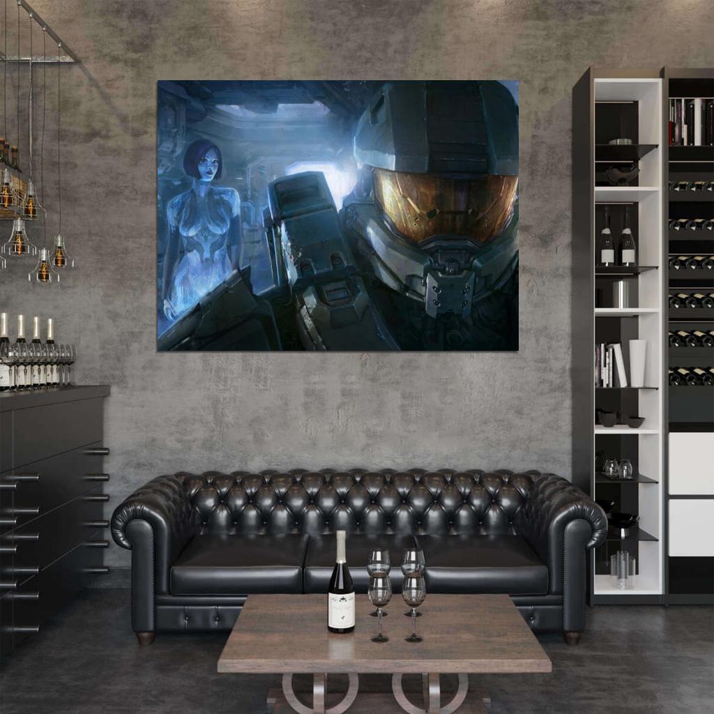 Halo 4 Master Chief Cortana Painting Video Game Art Wall Art Print Poster