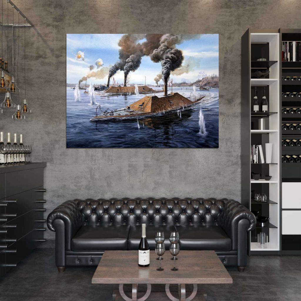 Perfect for Bold Decor: Ironclad Warship CSS Virginia USS Monitor Merrimack American Civil War Painting Art Wall Art Print Poster - perfect adult wall decor for bedrooms, private studios, man caves, garages or personal lounges. Erotic wall art, sexy photography prints, NSFW content and tasteful nude decor add bold elegance to your space, making them perfect for adult decor enthusiasts and collectors.