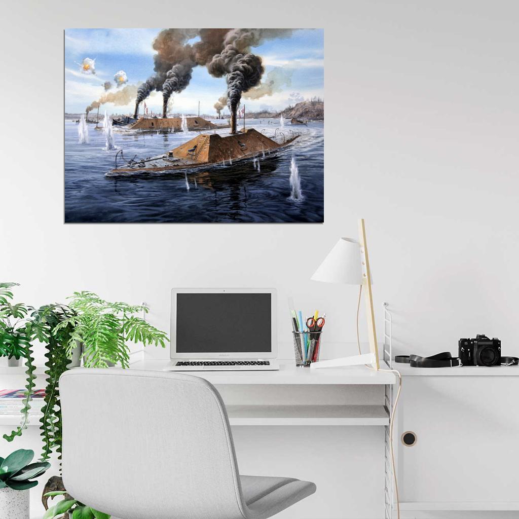 Ironclad Warship CSS Virginia USS Monitor Merrimack American Civil War Painting Art Wall Art Print Poster
