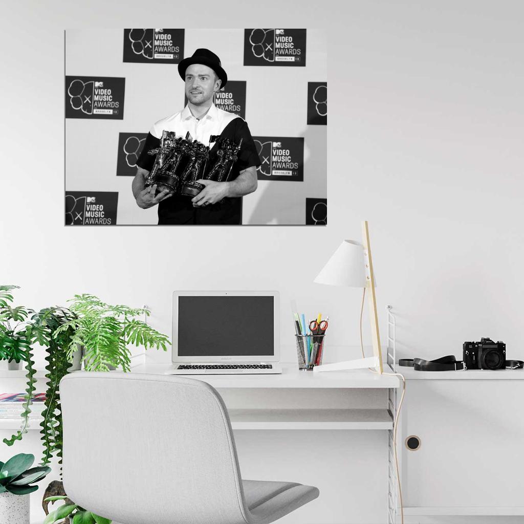 Perfect for Every Music Lover: Justin Timberlake VMA Pop Music Singer BW Rare Wall Art Print Poster is the ideal gift for fans of rap, rock, pop, jazz, hip-hop or any genre that moves the soul, making it a must-have for every true music enthusiast.
