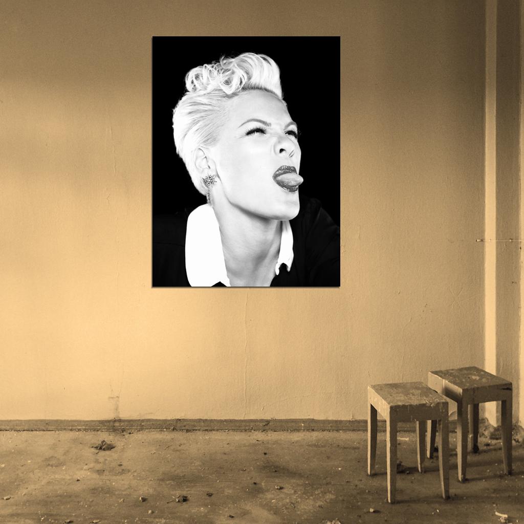Pink Tongue Funny Rock Pop Singer Music BW Art Wall Art Print Poster