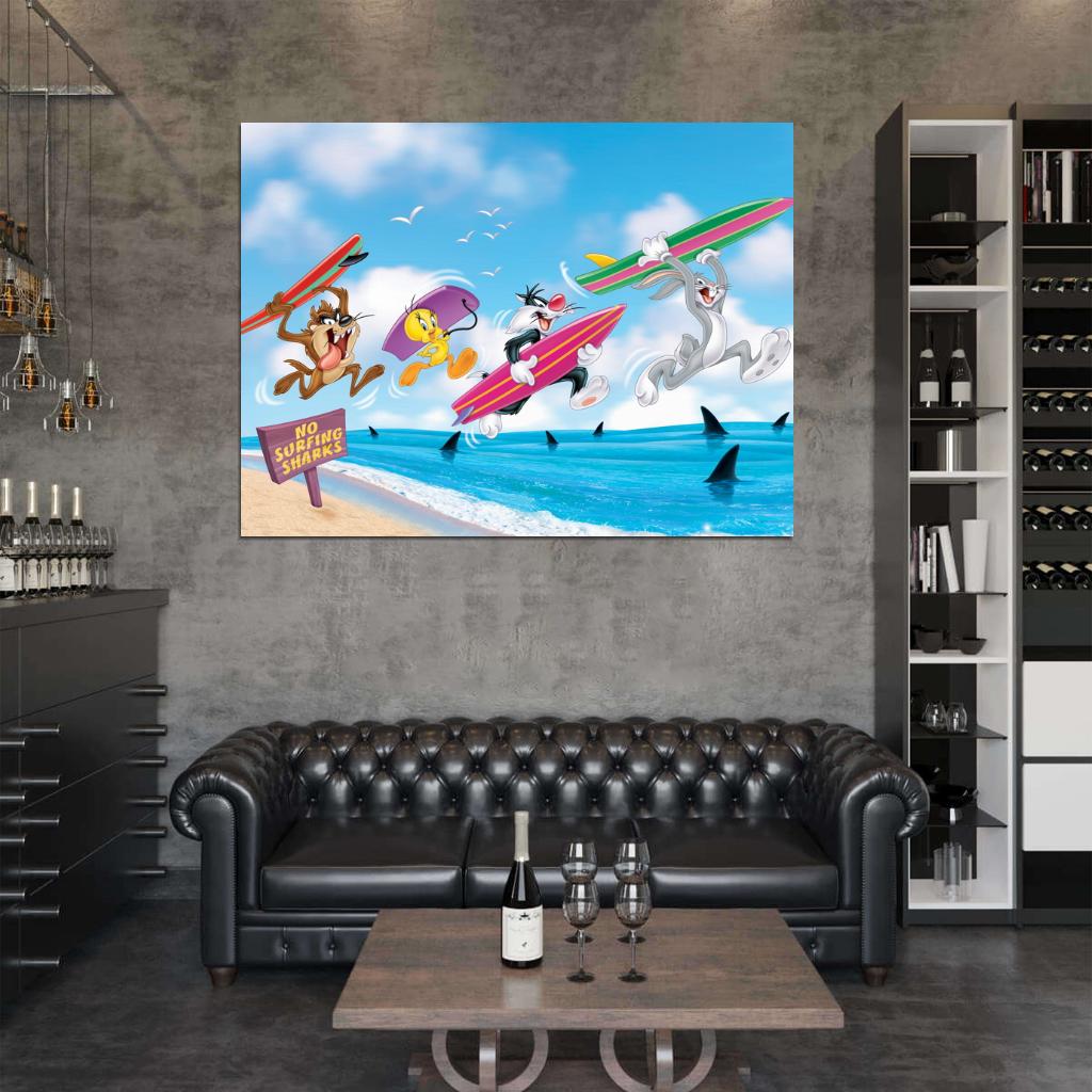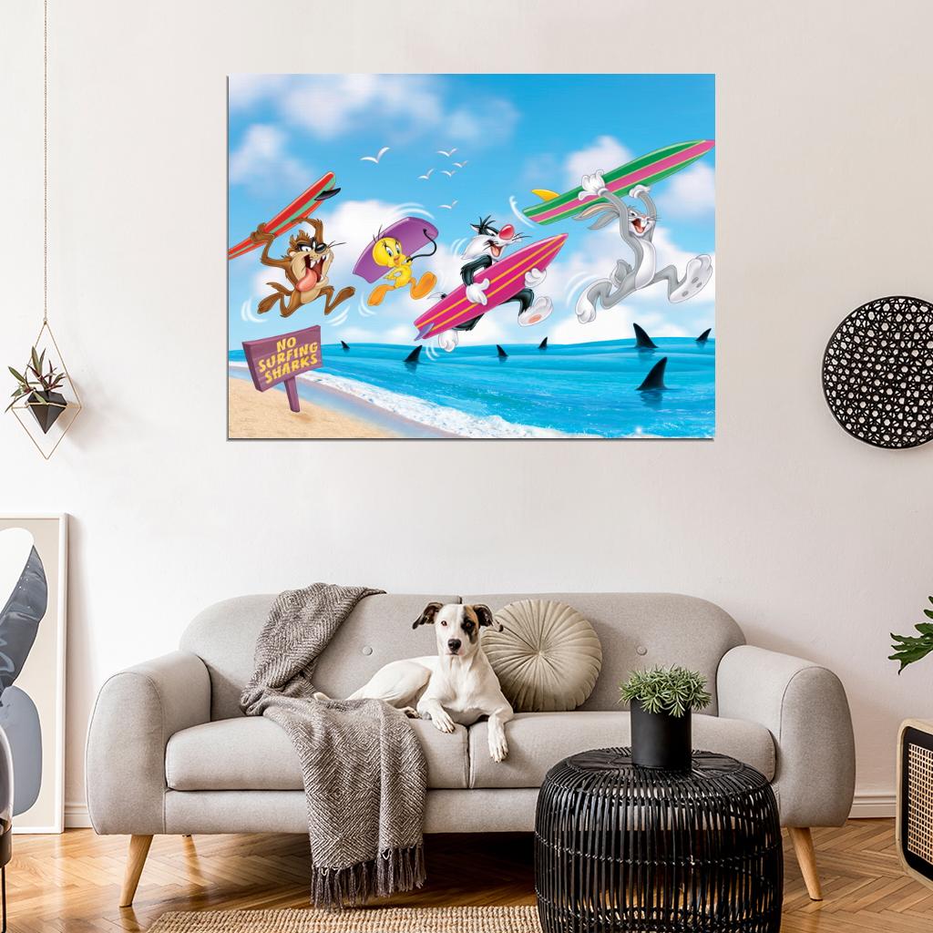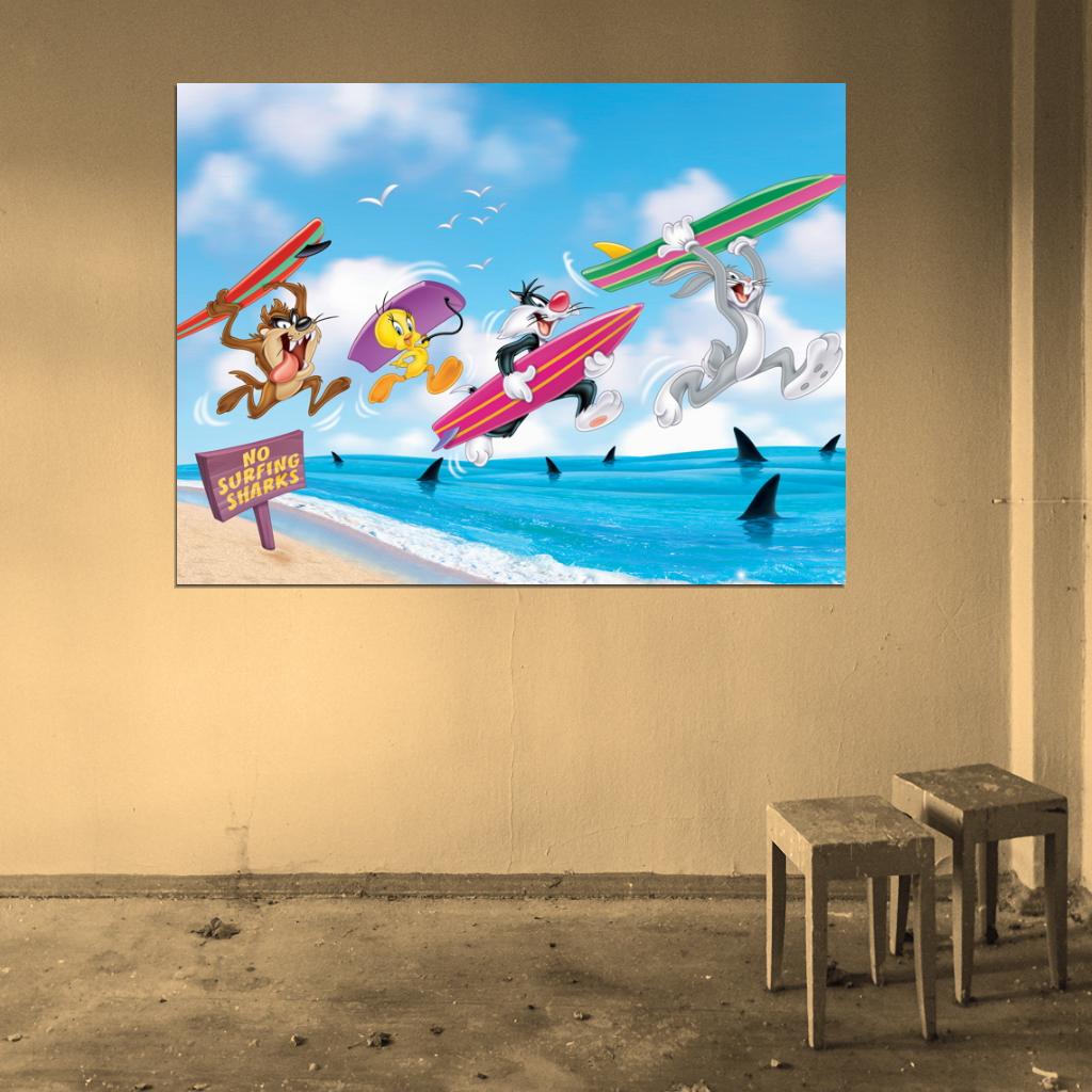 Tasmanian Devil Taz Bugs Bunny Tweety Bird Sylvester Pussycat Looney Tunes Cool Funny Art Wall Art Print Poster