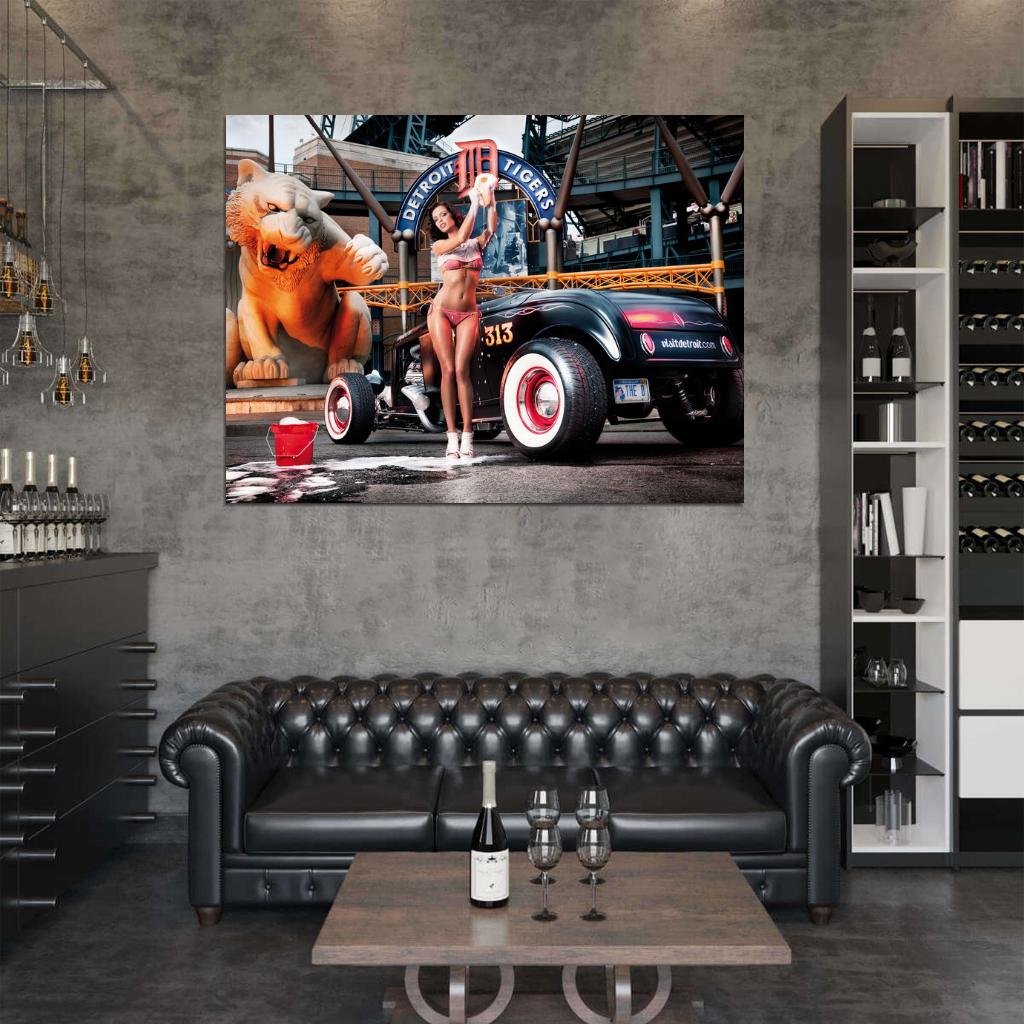 Wet Girl Hot Sexy Babe Woman Car Miss Tuning Wall Art Print Poster
