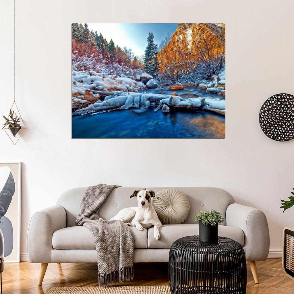 Perfect for Every Nature-Inspired Decor: Winter River Snow Ice Cliffs Forest Beautiful Wall Decor Room Print Poster adds aesthetic charm to your decor. Featuring serene landscapes, beautiful florals, and majestic wildlife, this nature-inspired wall art is perfect for creating a trendy collage in your space.