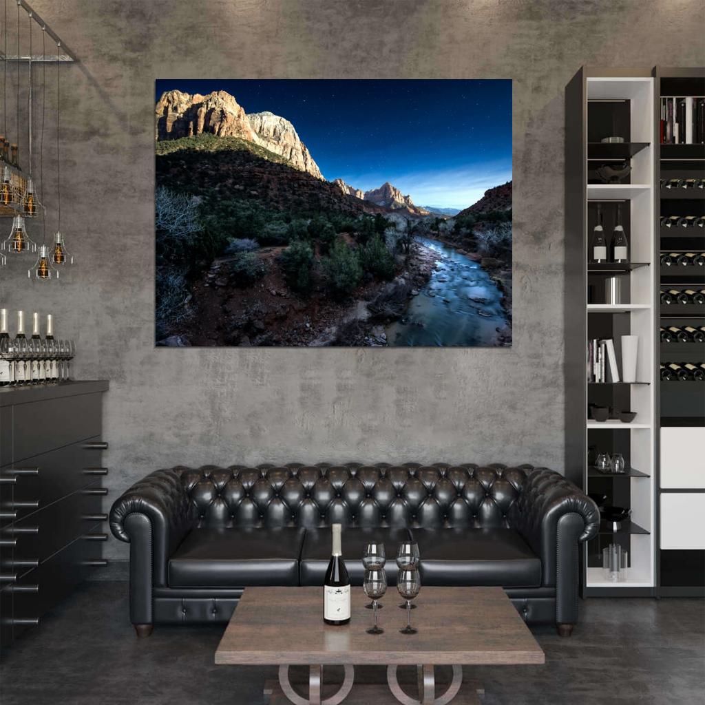 Zion Park Night Stars Cliffs River Beautiful Wall Decor Room Print Poster
